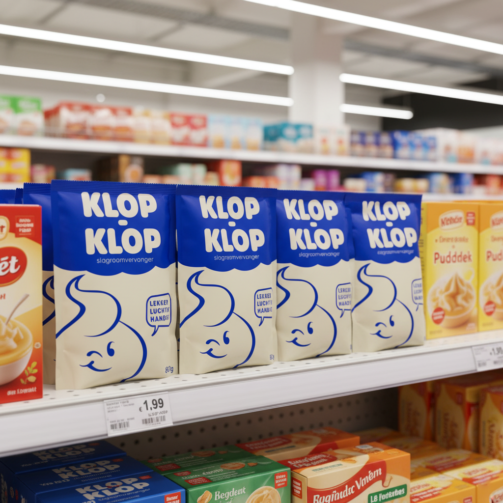 Klop-Klop is a whipped cream stiffener who has been around for some time now. With a very outdated package design it was time for a redesign.